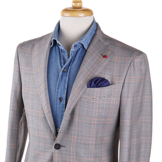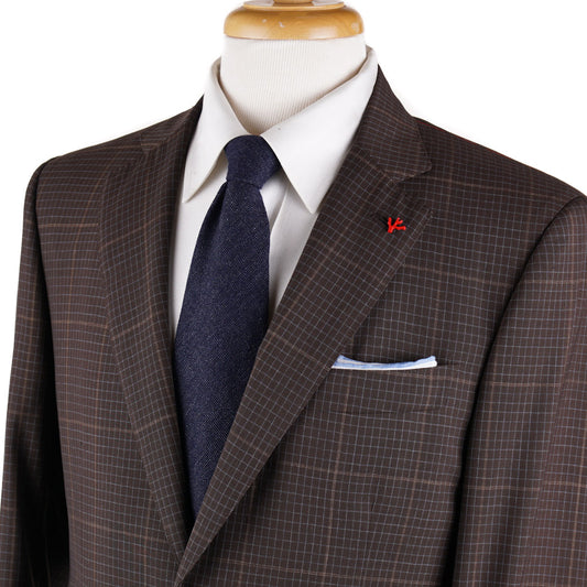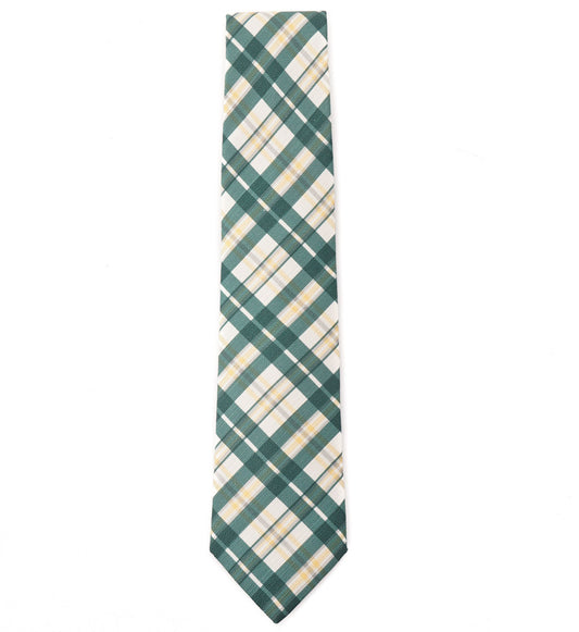 Isaia Green and Yellow Check Print Silk Tie