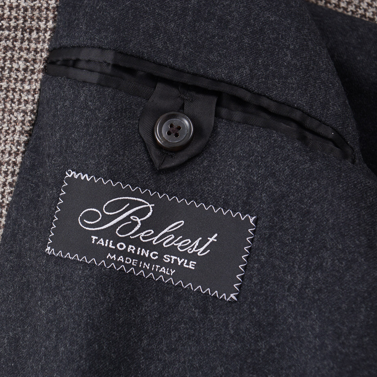 This rakish overcoat from Belvest is tailored from a woven houndstooth check patterned wool blend fabric with soft flannel wool lining.