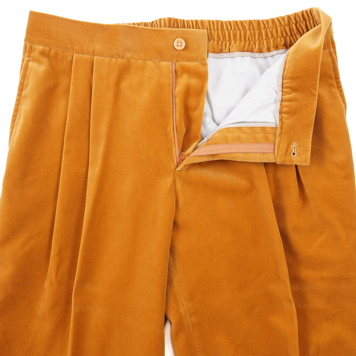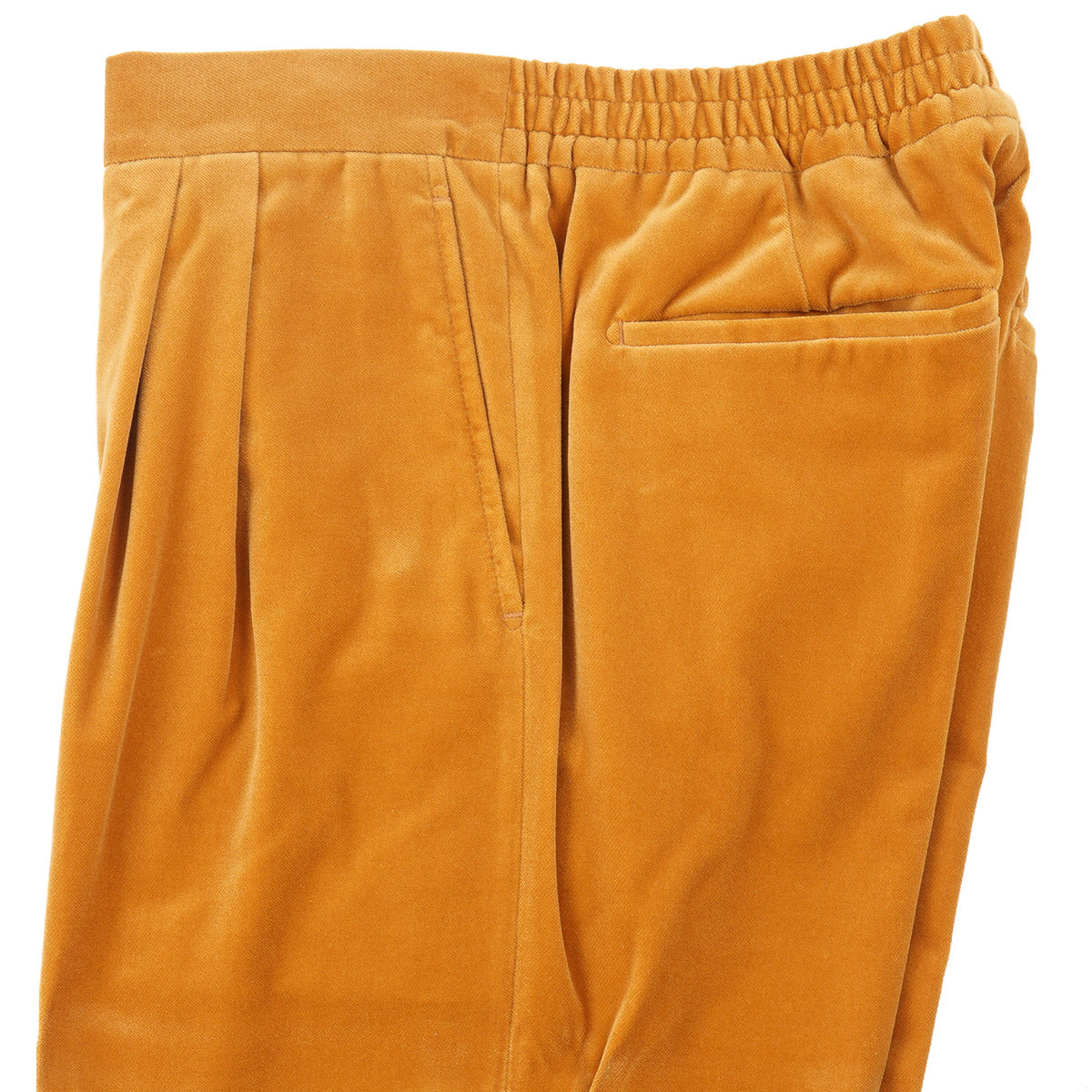 Rich ochre gold-orange plush velvet cotton fabric with gold metal buttons. 100% cotton. Fall and winter weight