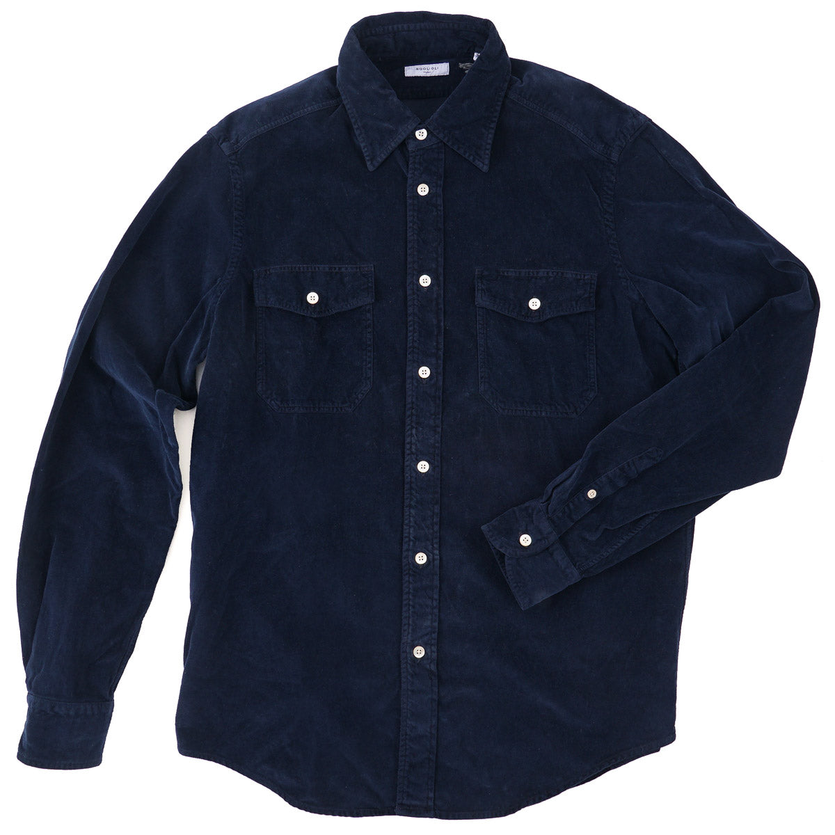 Soft brushed velvet cotton fabric in a darker navy blue shade. 100% cotton. Fall and winter weight.