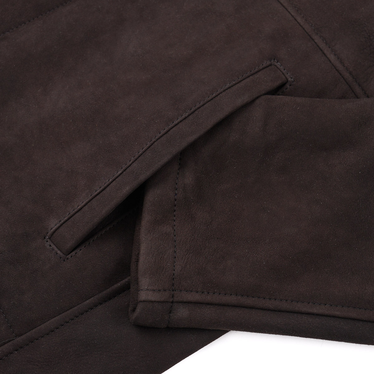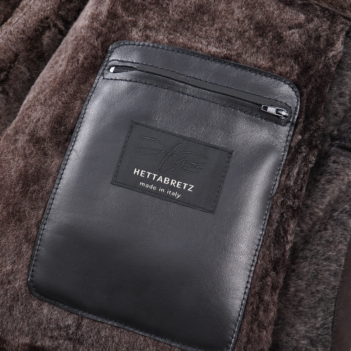 This luxury outerwear coat from Hettabretz is tailored from an exceptionally soft and plush mouton shearling that's warm and cozy in cold weather.