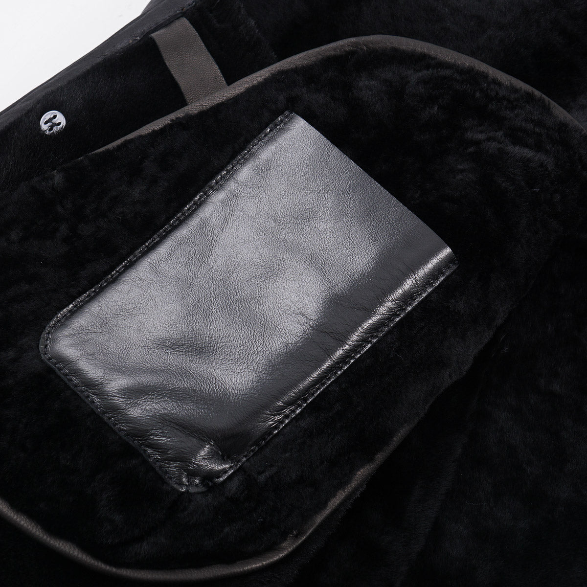 This luxury outerwear coat from Hettabretz is tailored from an exceptionally soft and plush mouton shearling that's warm and cozy in cold weather.