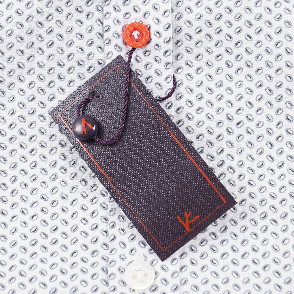 White extrafine cotton fabric with gray printed mini oval design. 100% cotton. Mid weight.