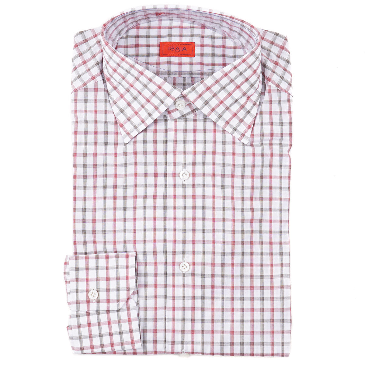 This handmade Mix fit dress shirt from Isaia Napoli features a modern, tailored fit with high Neapolitan style armholes. Rendered in a lighter weight pure cotton fabric that's comfortable for year-round wear.