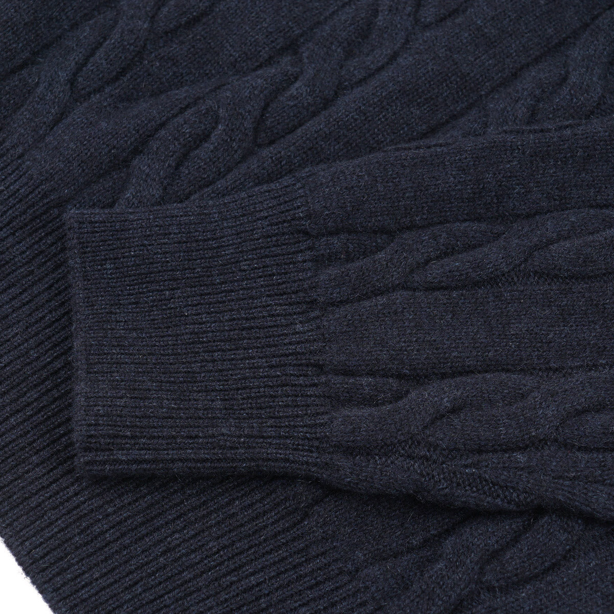 Dark midnight blue extra-soft cashmere fabric in a cable knit design. Fall and winter weight. 100% cashmere.