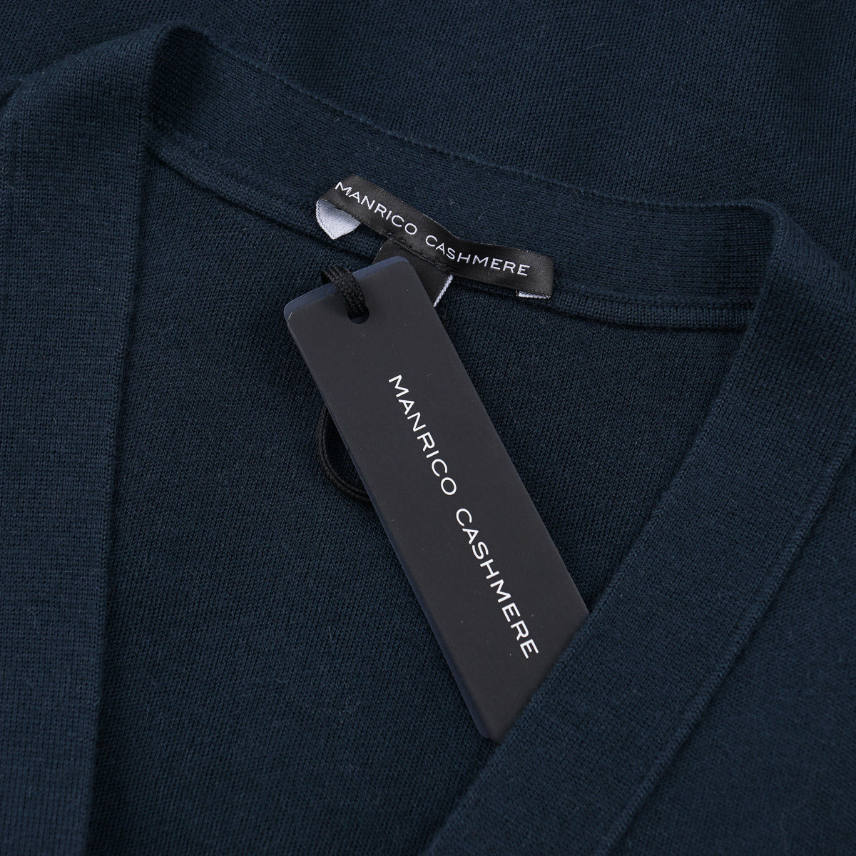 This luxury cardigan sweater from Manrico is tailored from a midweight cashmere fabric that can be worn through autumn, winter, and spring.