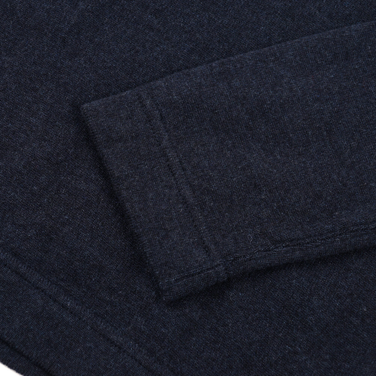 Solid dark midnight blue stretch knit cashmere fabric. Mid-weight. 100% cashmere.