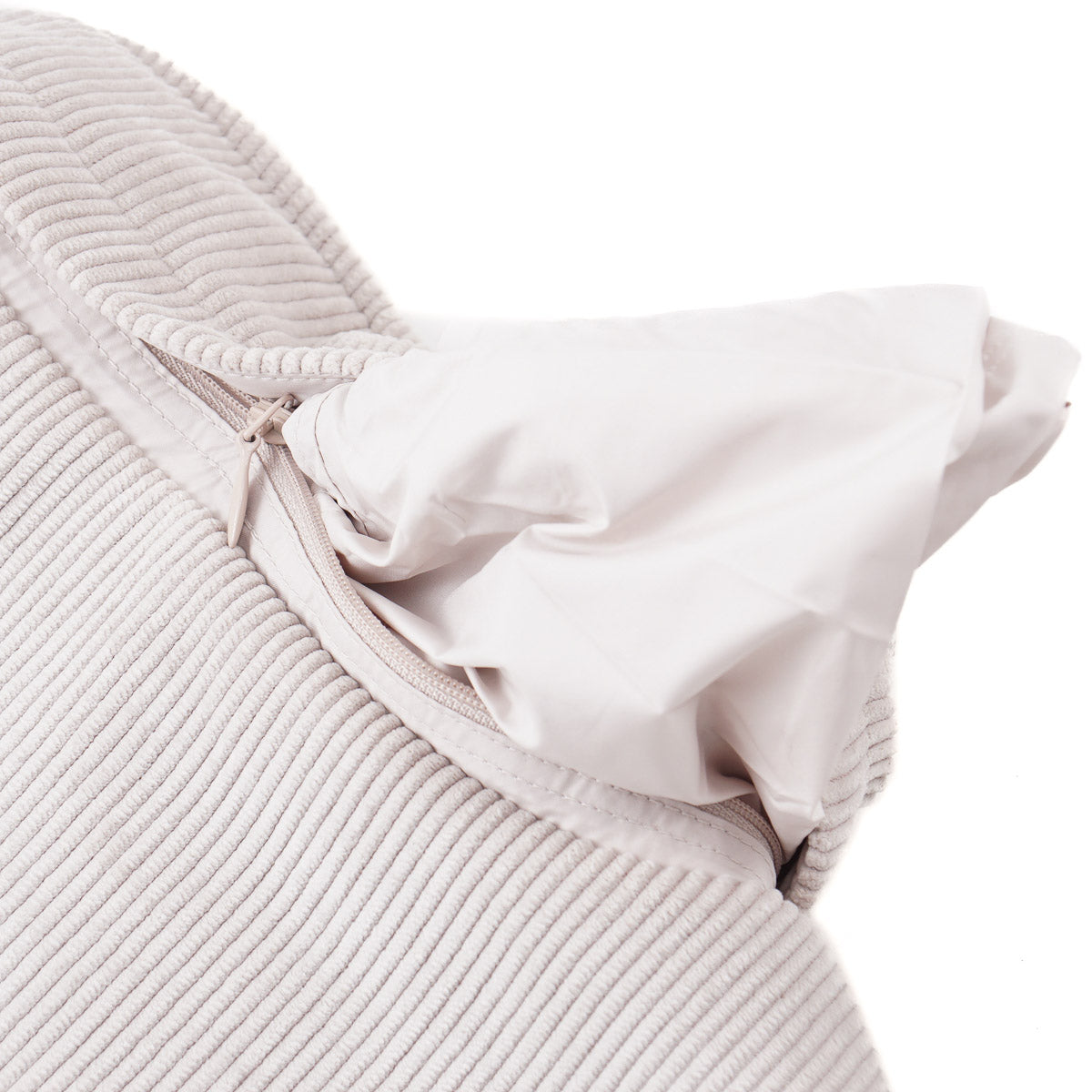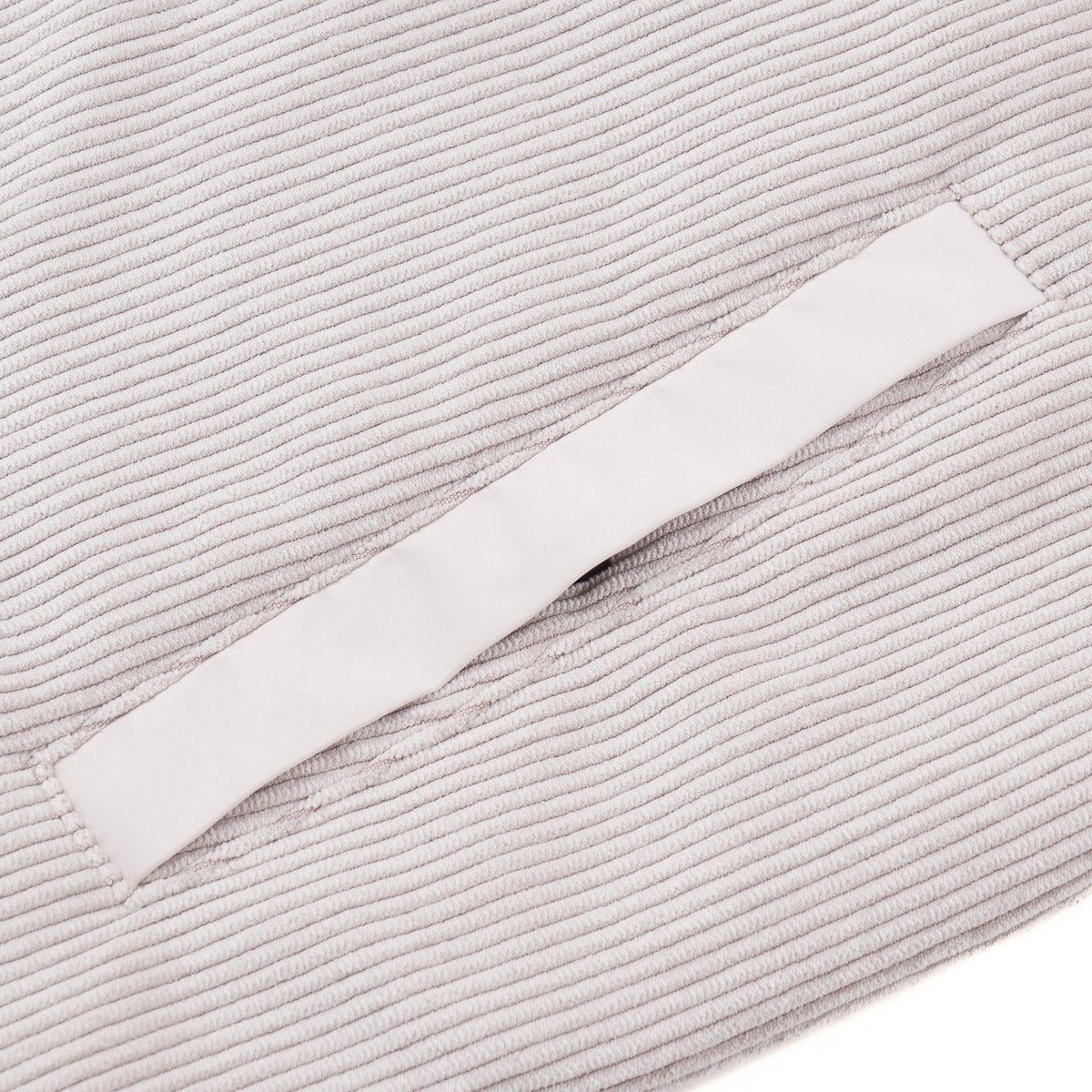 Ivory cream brushed corduroy fabric with contrasting tech fabric lining and details. 85% polyester, 12% nylon, 3% elastane. Mid-weight