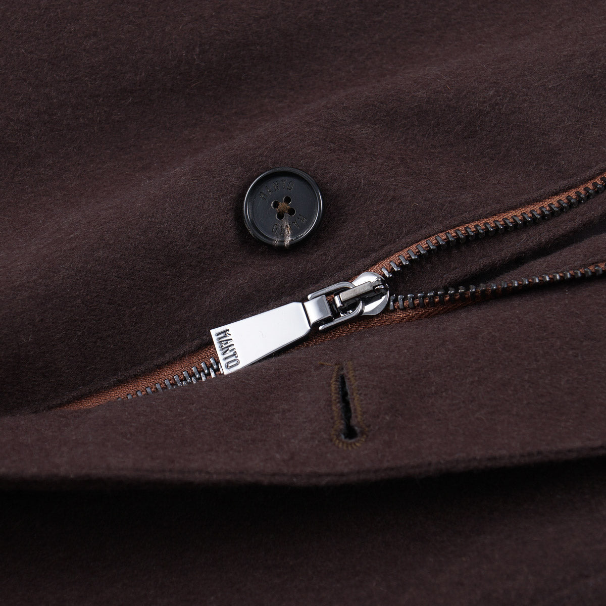 Chocolate brown Loro Piana flannel cashmere fabric with light insulation. 100% cashmere. Fall and mild winter weight