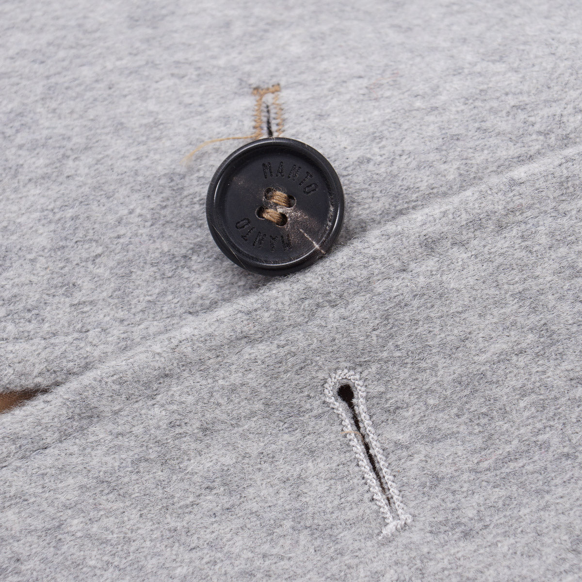 Light gray soft brushed flannel cashmere fabric with camel tan technical fabric on the reverse side. 100% cashmere; 100% polyester. Mid-weight