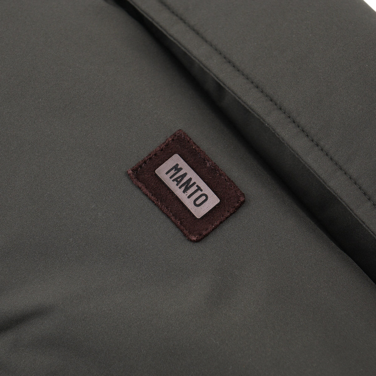 This functional-detailed luxury outerwear jacket from Manto is tailored from a weather-repellent technical fabric with warm goose down insulation.