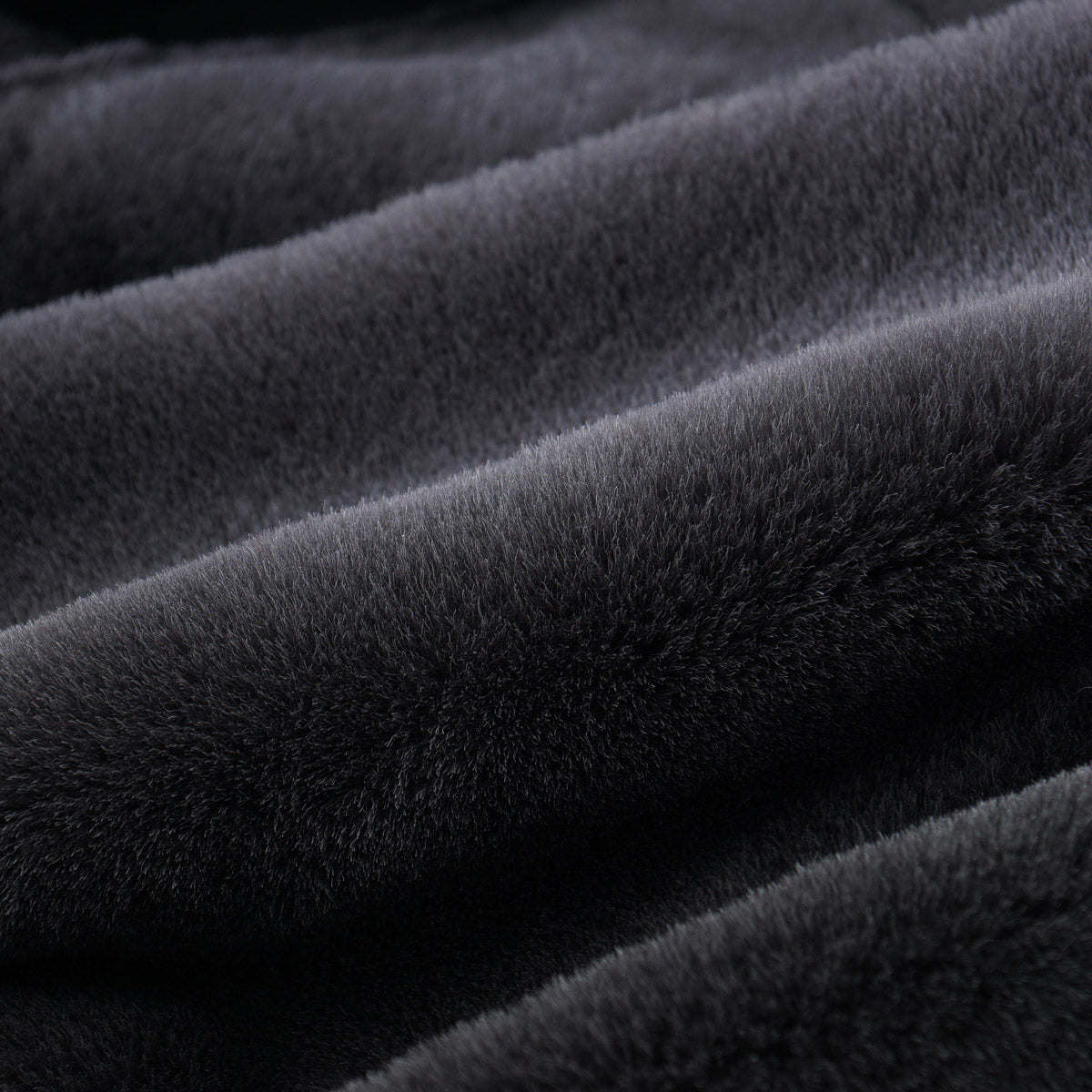 Rich dark brown colored suede charcoal gray extra-soft sheepskin shearling fur lining. 100% shearling leather. Fall and winter weight.