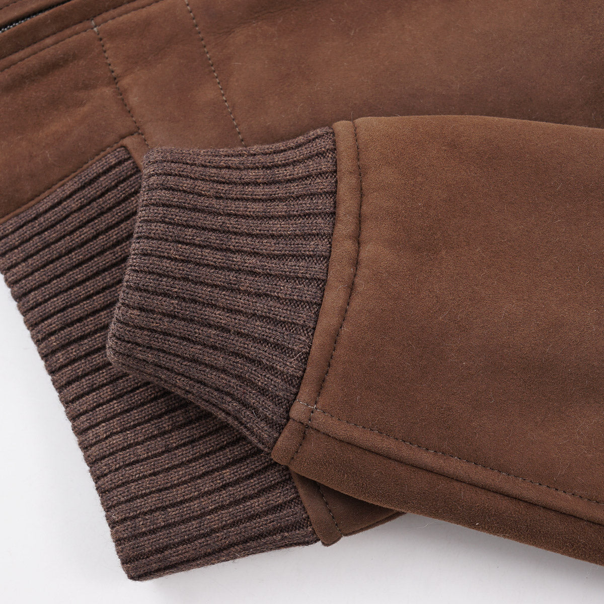 This luxury outerwear bomber jacket from Rifugio Napoli is tailored from an exceptionally soft and plush mouton shearling that's warm and cozy in cold weather.