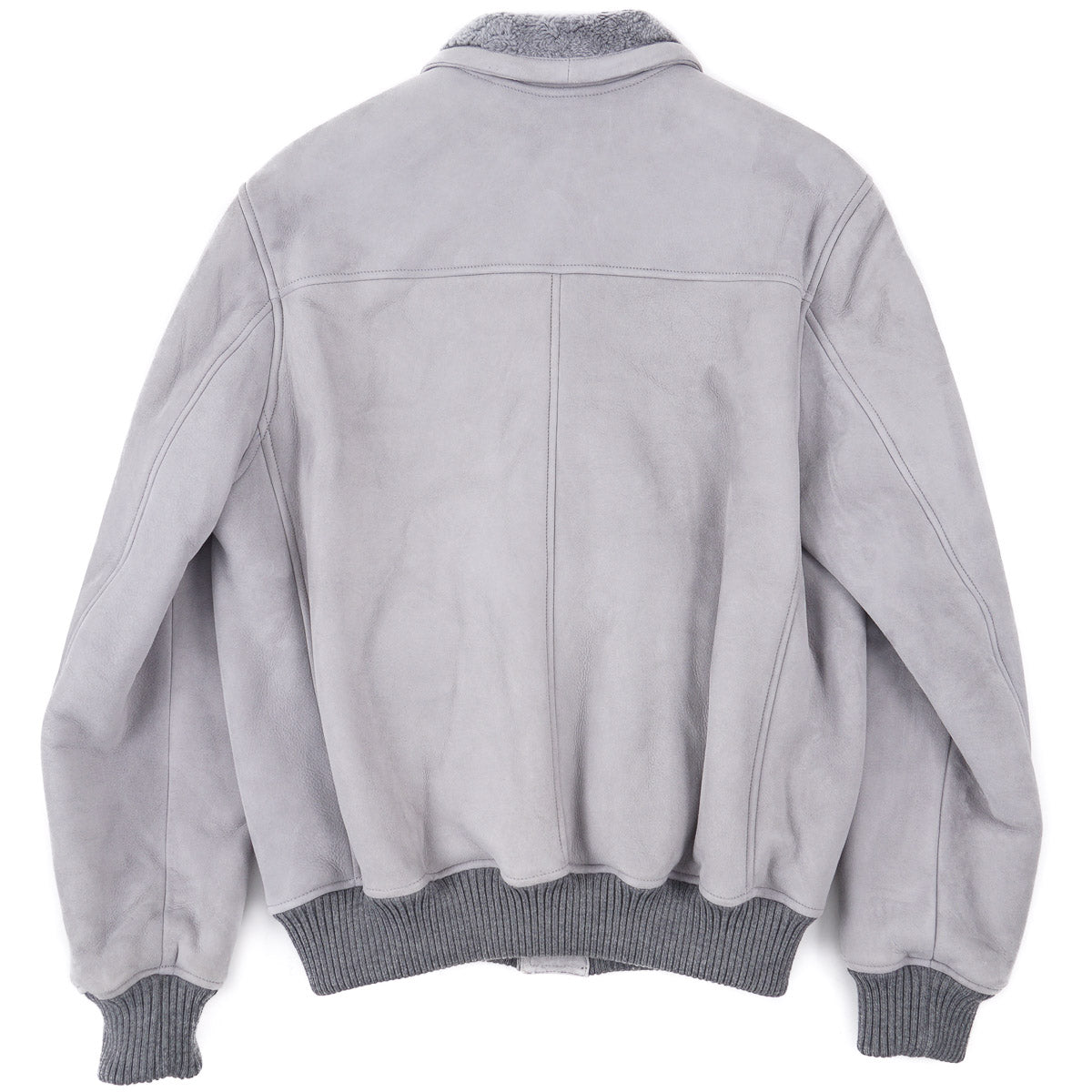 Light gray colored suede with sheepskin shearling fur lining.  100% shearling leather.  Fall and winter weight.