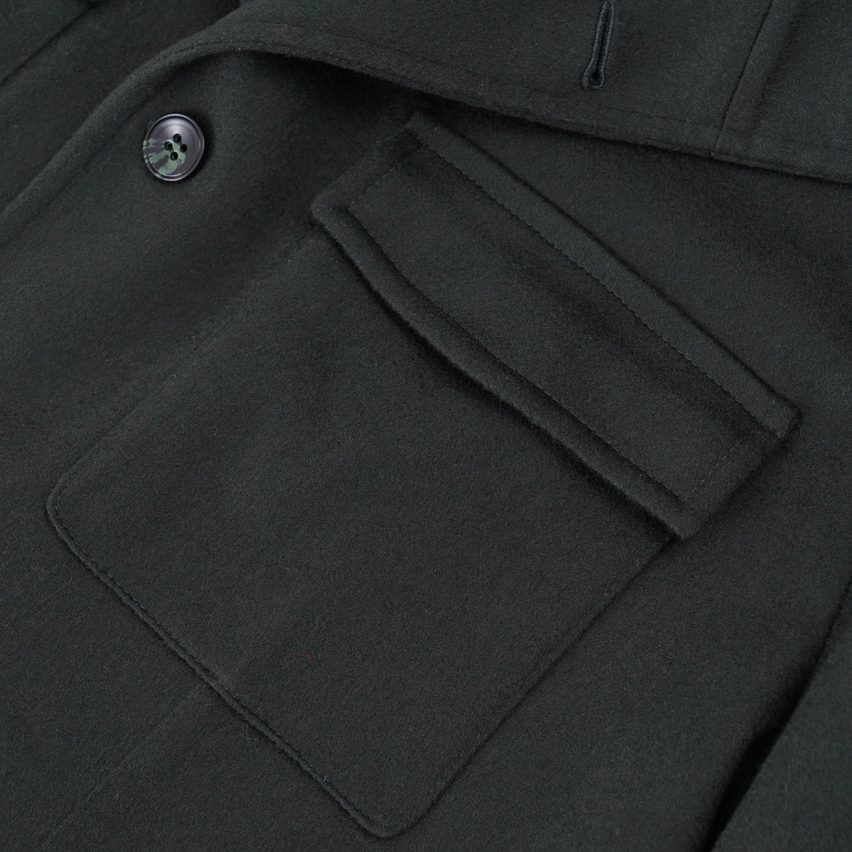 Darker forest green soft-brushed flannel cashmere fabric. Fall and mild winter weight. 100% cashmere.