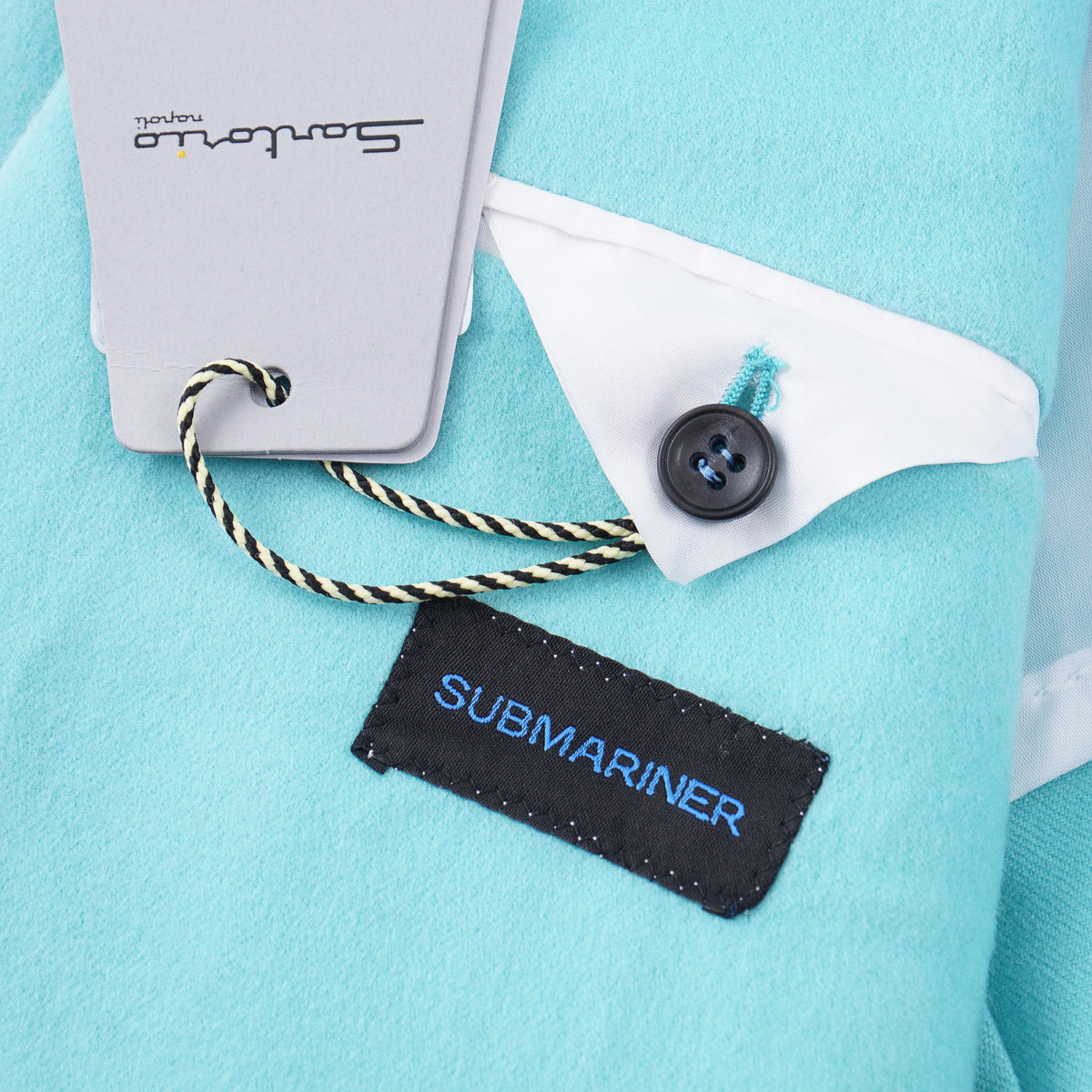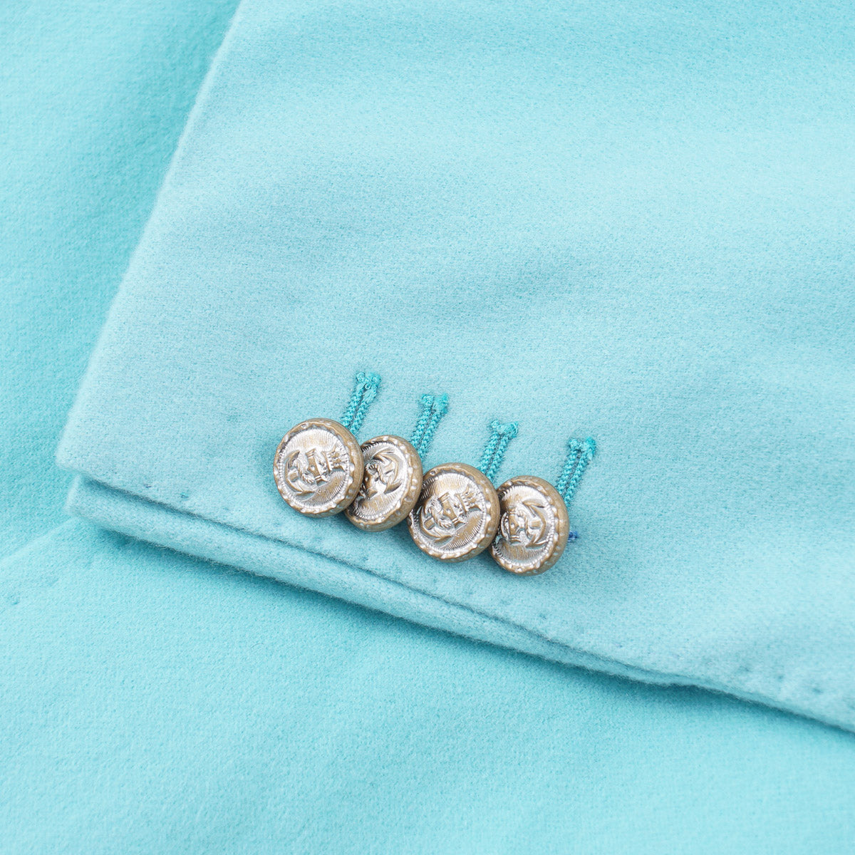 Solid aqua blue extrafine flannel cashmere fabric. 100% cashmere. Mid-weight; suitable for fall and winter