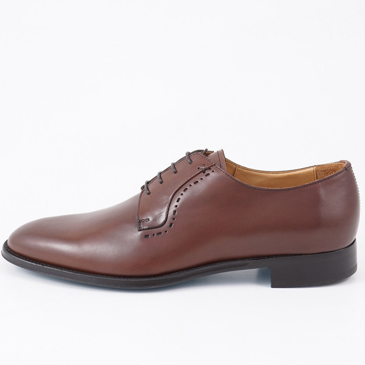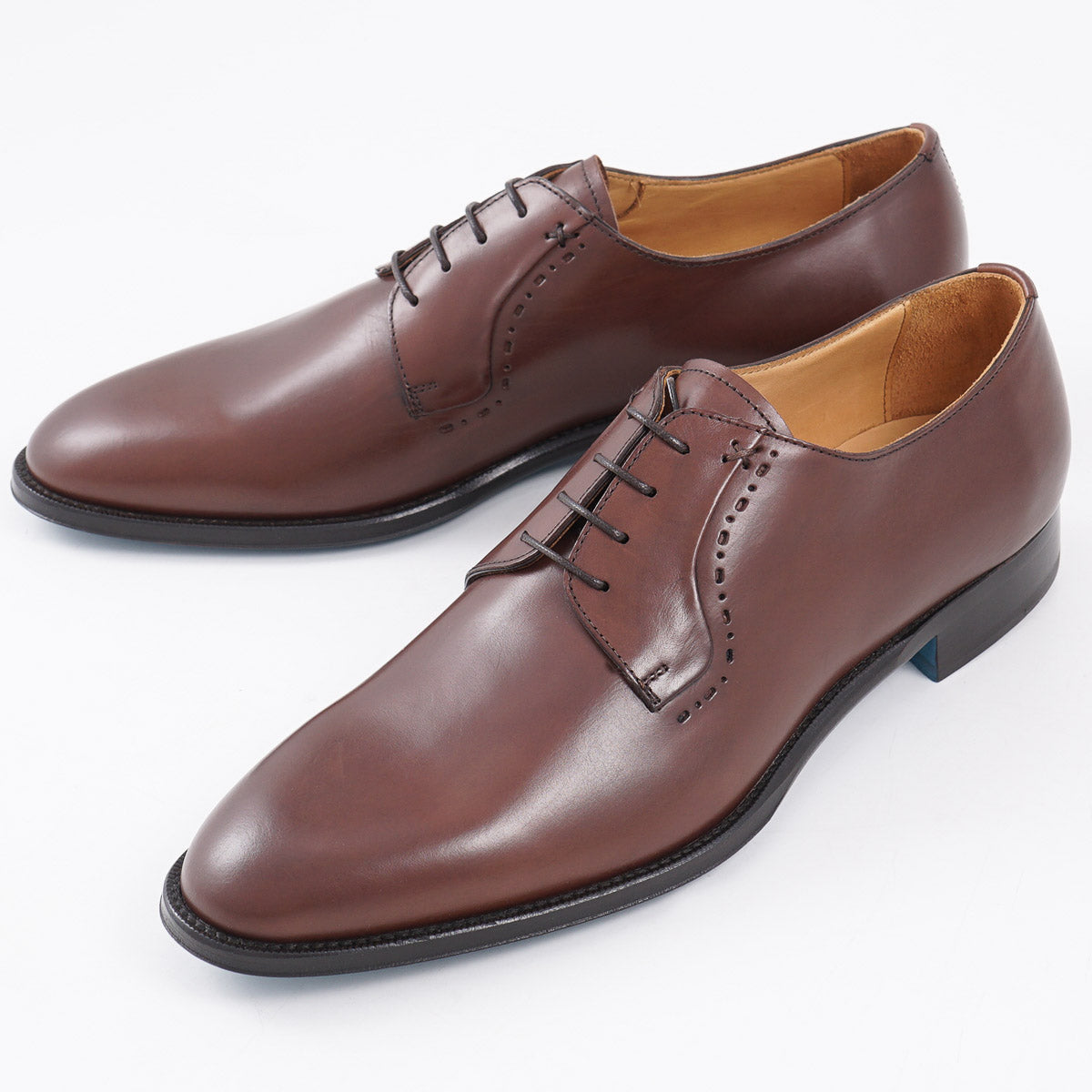 Rich medium chestnut brown soft, smooth calf leather uppers. Contrasting blue leather outsole.