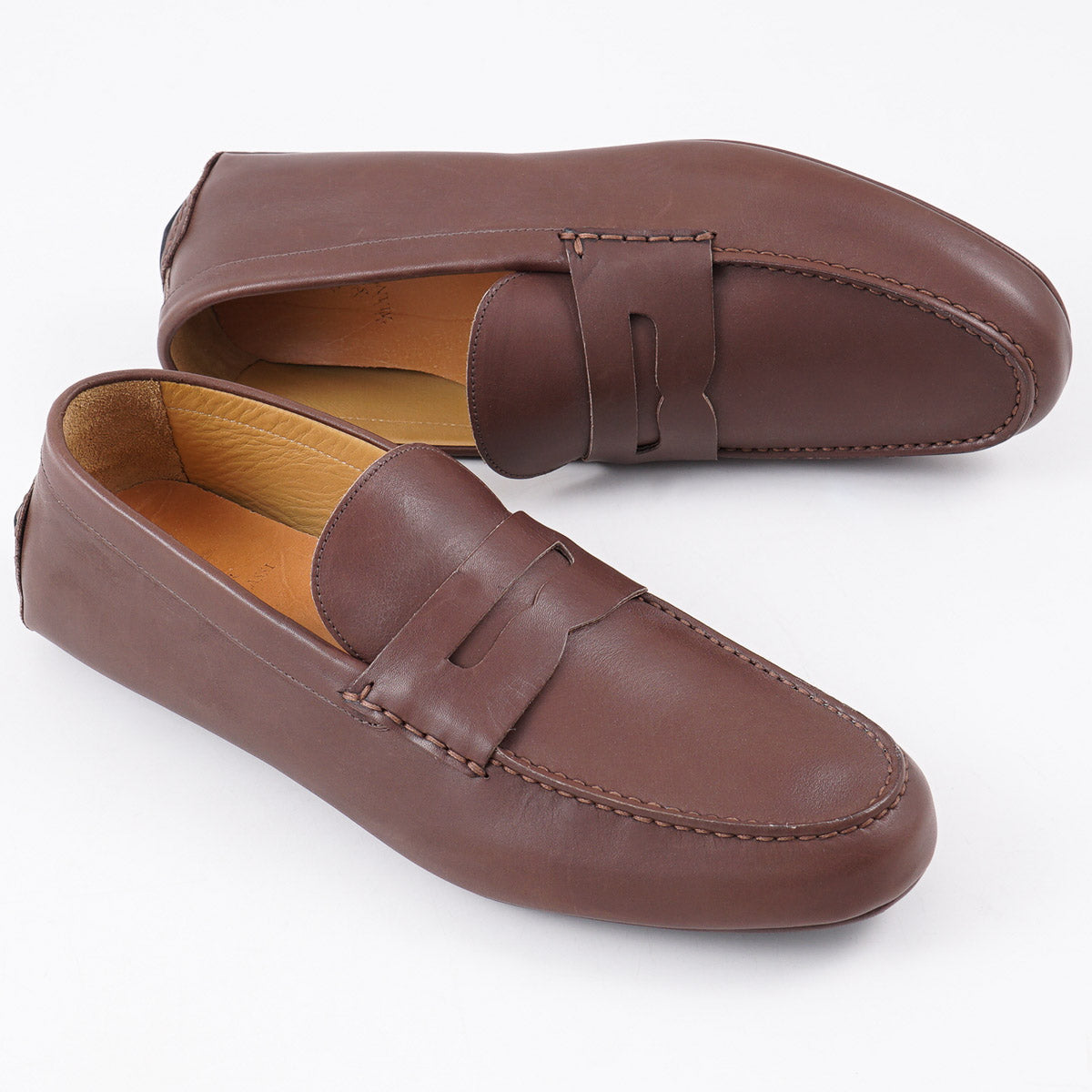 The pair of luxury driving moccasins from Sutor Mantellassi is crafted from a rich medium brown calfskin leather.